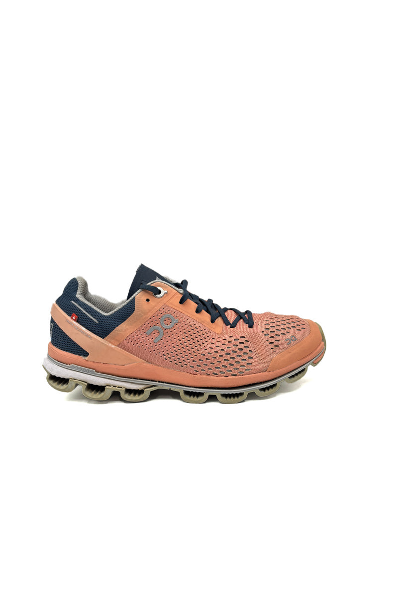 The On Running Cloudsurfer combines Swiss engineering with dynamic cushioning for runners seeking speed without sacrificing comfort. CloudTec technology features responsive pods that compress on impact and rebound with energy efficiency, propelling you forward with each stride. The lightweight design reduces fatigue during tempo runs and race efforts, while the streamlined upper provides secure support and breathability. A durable outsole delivers reliable grip across road surfaces, maintaining traction through varied conditions. The Fountain colorway adds visual appeal to this performance-focused shoe. Whether tackling speed work or pursuing personal records, the Cloudsurfer delivers the responsive ride and precision engineering that competitive runners demand.